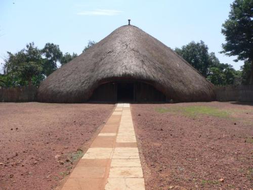 Outside the bustle of town, the site where the kings of Buganda are buried boasts a large grassed hut. The Buganda, a Bantu people, are the largest tribe in Uganda with 16% of the population mostly settled around Kampala. Work is slowly proceeding on restoring grass roofs and re-matting boundaries in anticipation of CHOGOM when the Queen of England will visit the tombs of the kings of Buganda. She will not be allowed to pass the fence of spears however, unless she too is drawn into the mythical forests where the local dead kings now dwell.