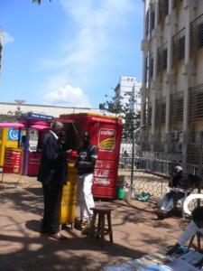 All this is a long way from Kampala – at least 8 hours by road. In this capital of 1.2 million, life is a series of visual contrasts as economic development rushes into the city. The blue glass high rise of the social security building is fringed by streets where vendors loll on the pavement; a young boy stands patiently behind bathroom scales waiting for a rare customer; men in suits use phones at mobile kiosks.