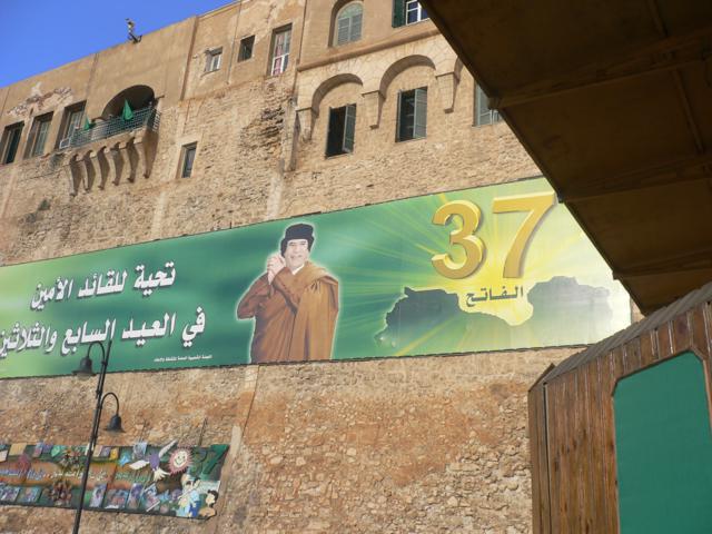 Green Square is the civic centre of Tripoli. On one side is the Med a few scraggerly palms along the front, on another the Italinate arched gallerias; across from them is the fine museum and the doorway to the medina. Here in front is the platform where Gaddafi used to stand to harangue the people and review his Empire. The medina has the narrow alleys of Middle Eastern cities; tradesman shape bronze; antiques and gold are sold. I scored some fine coral and trading beads. But Tripoli never felt alive to me and now seeing the depth of the anger the people have, I understand.