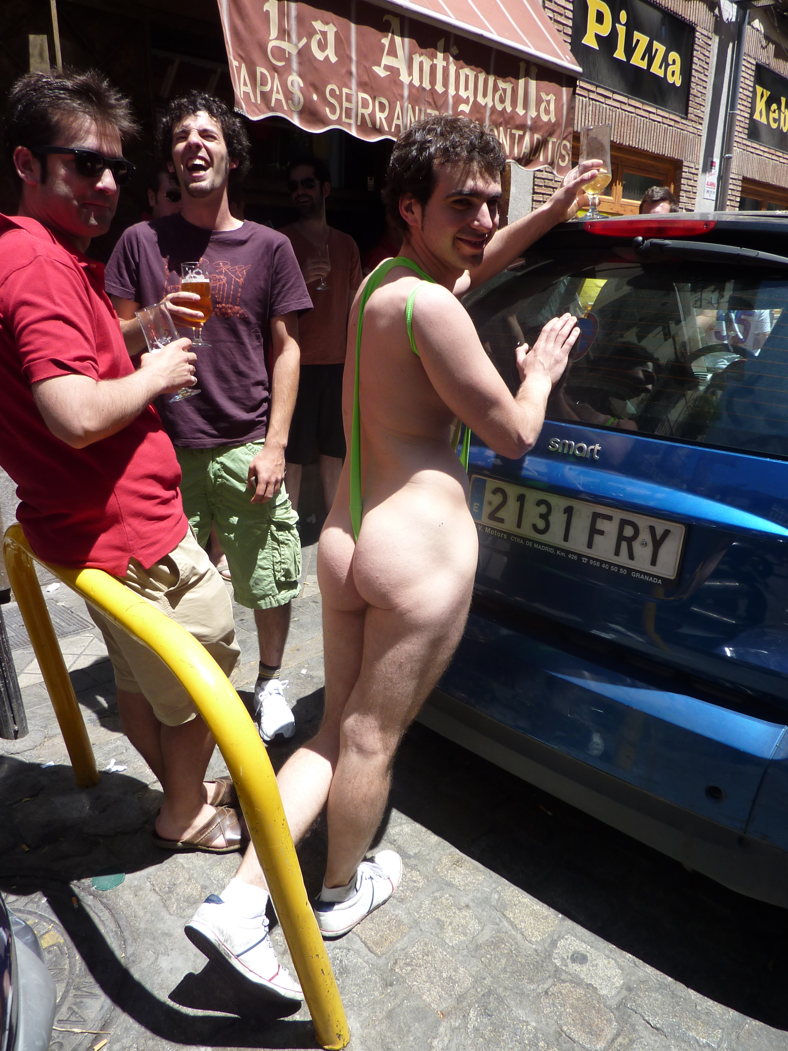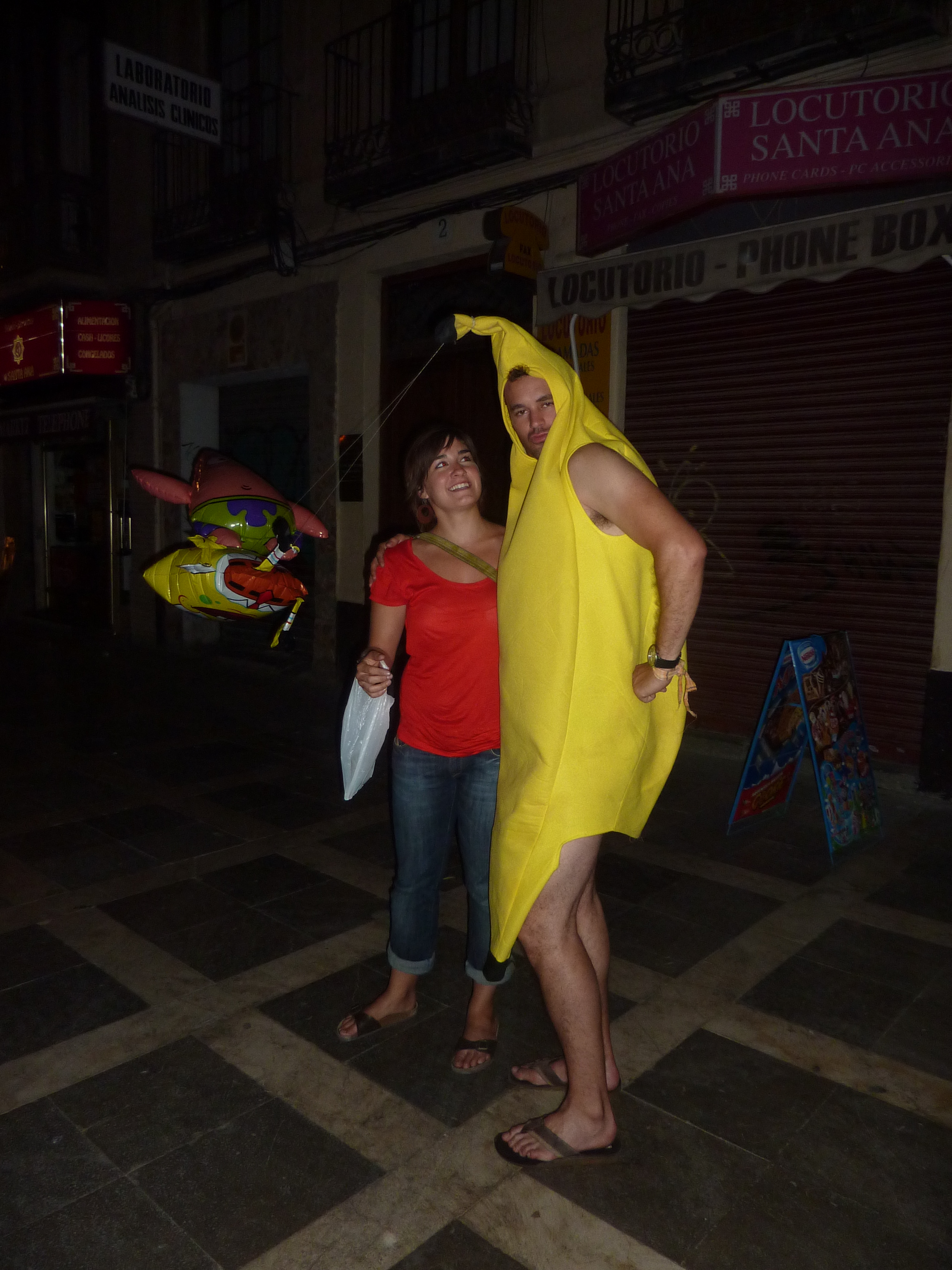 Later a young man in a mankini stands chuggalugging and a banana walks by; must have been a bucks’ nights??