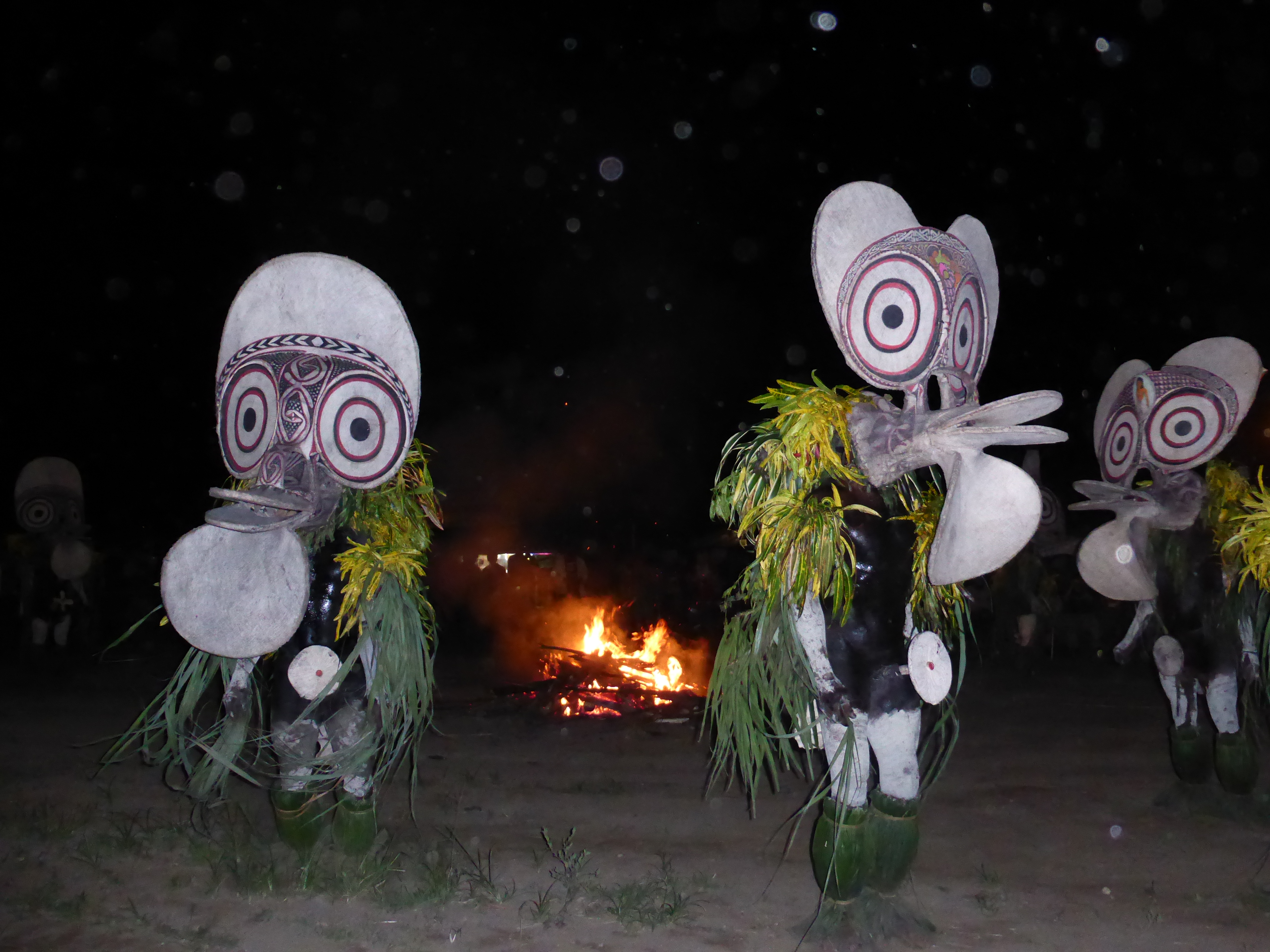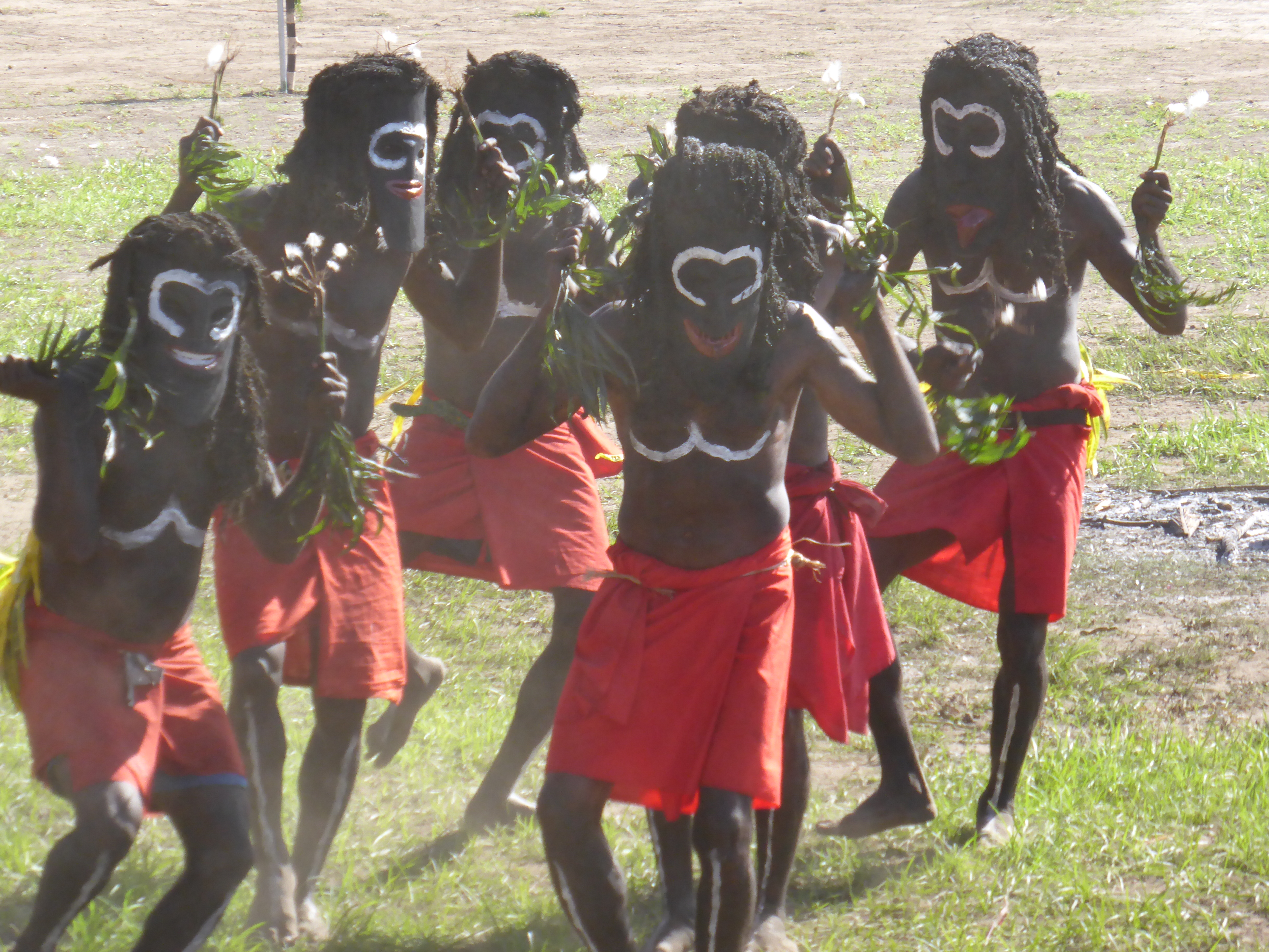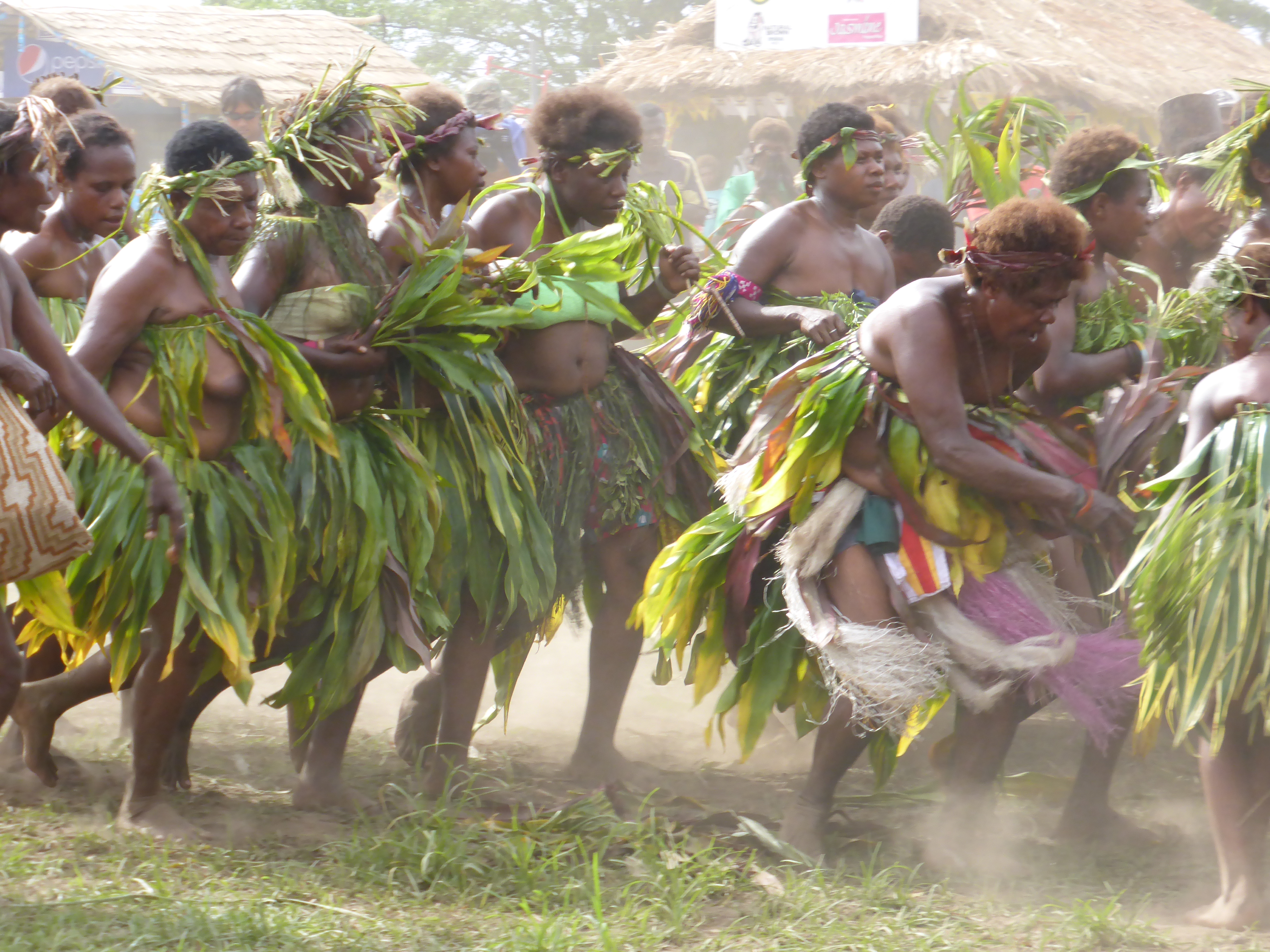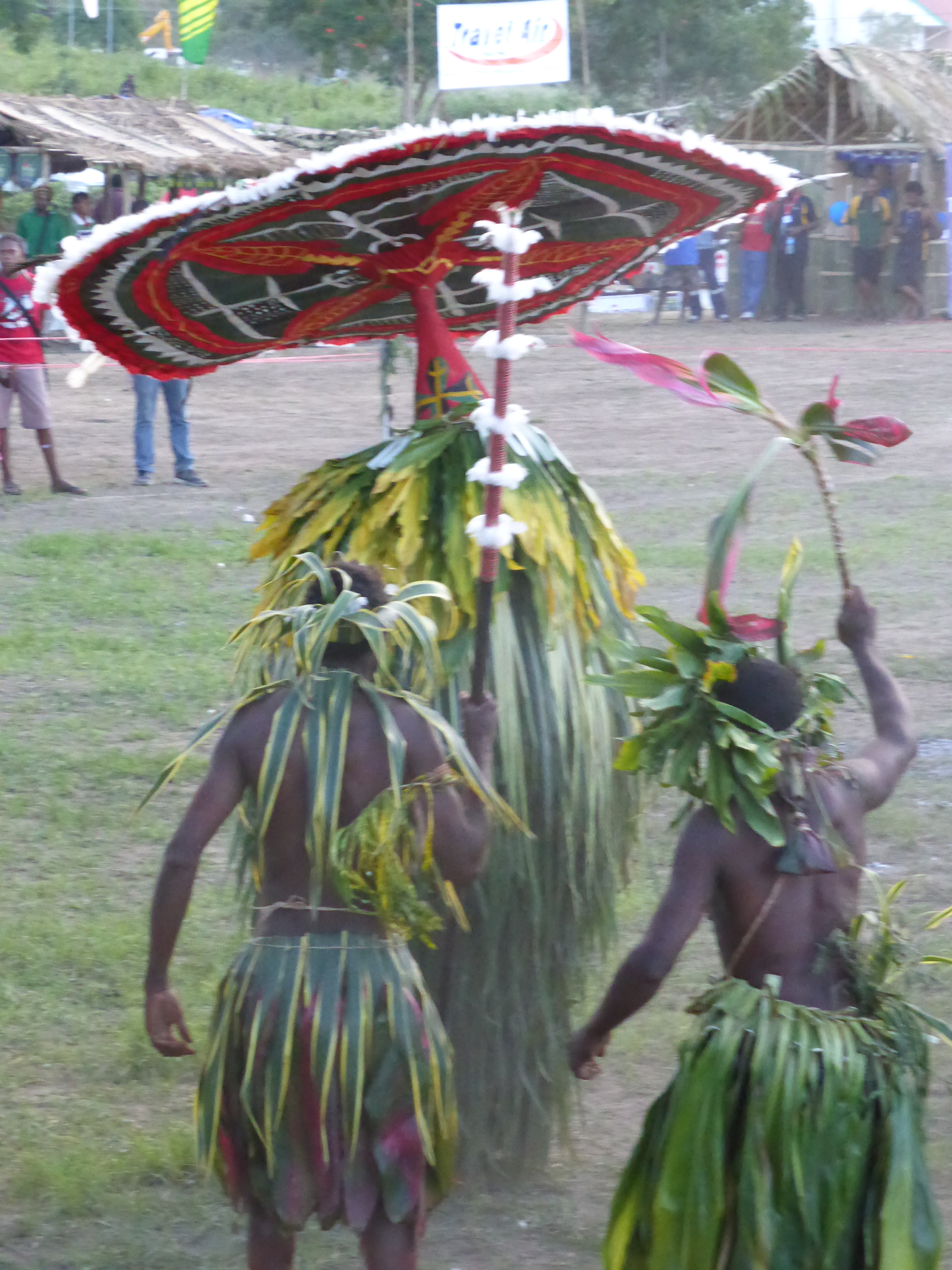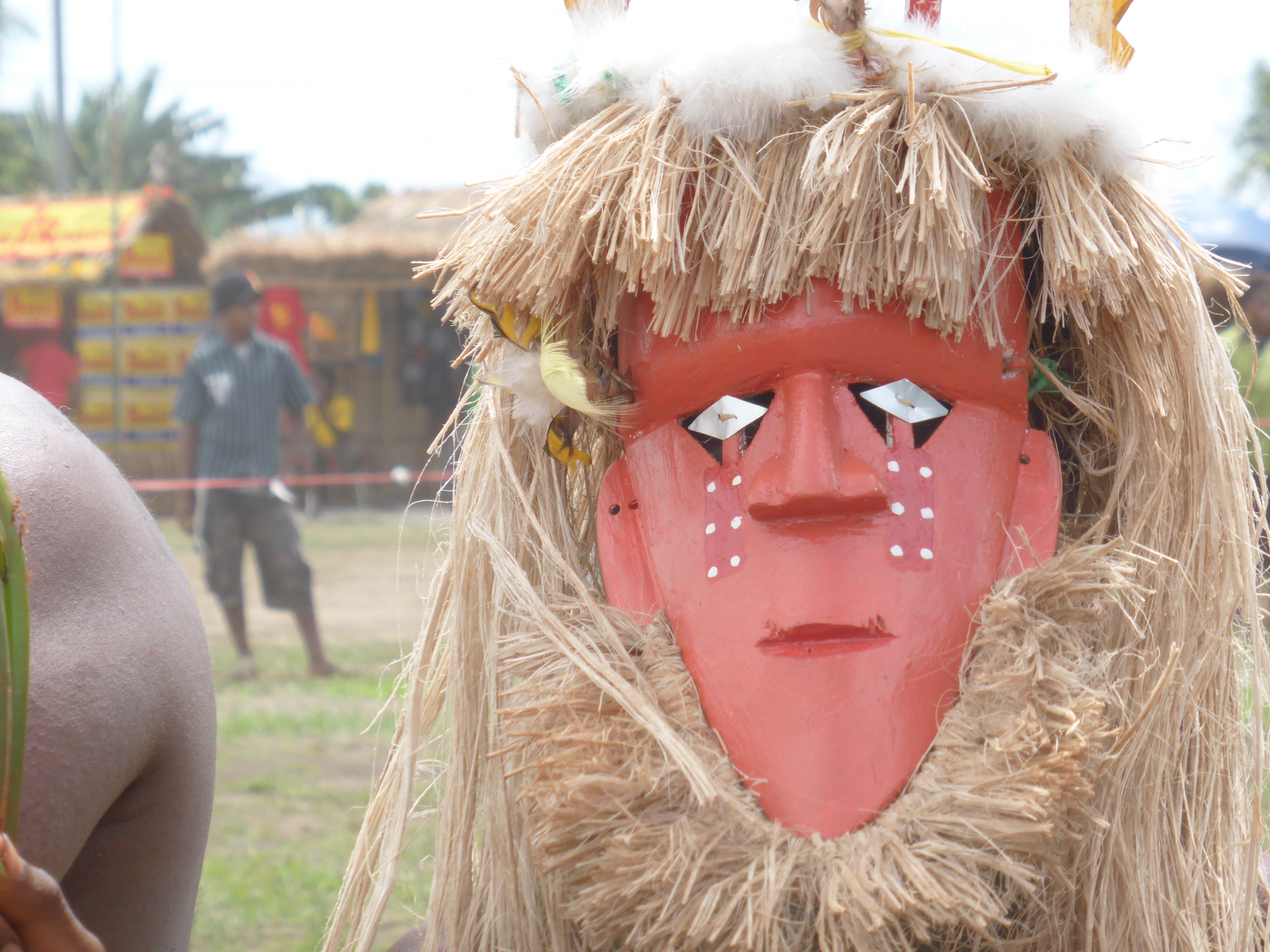 The Kokopo museum made me want to cry…. empty shelving, layers of dust, faded exhibits. Were I here longer I would want to impose or at least, dust. Days 5 and 6 The 19th annual Mask Festival!! We have watched the grass huts go up over the past days and all is ready, except the electricity is not working too well, the passes aren’t ready, and the side gate has to be kept locked as the security guards seem to be letting friends in. It starts at dawn with the clans from the Duke of York islands coming across the water drumming to start the festival, the Kinovai.