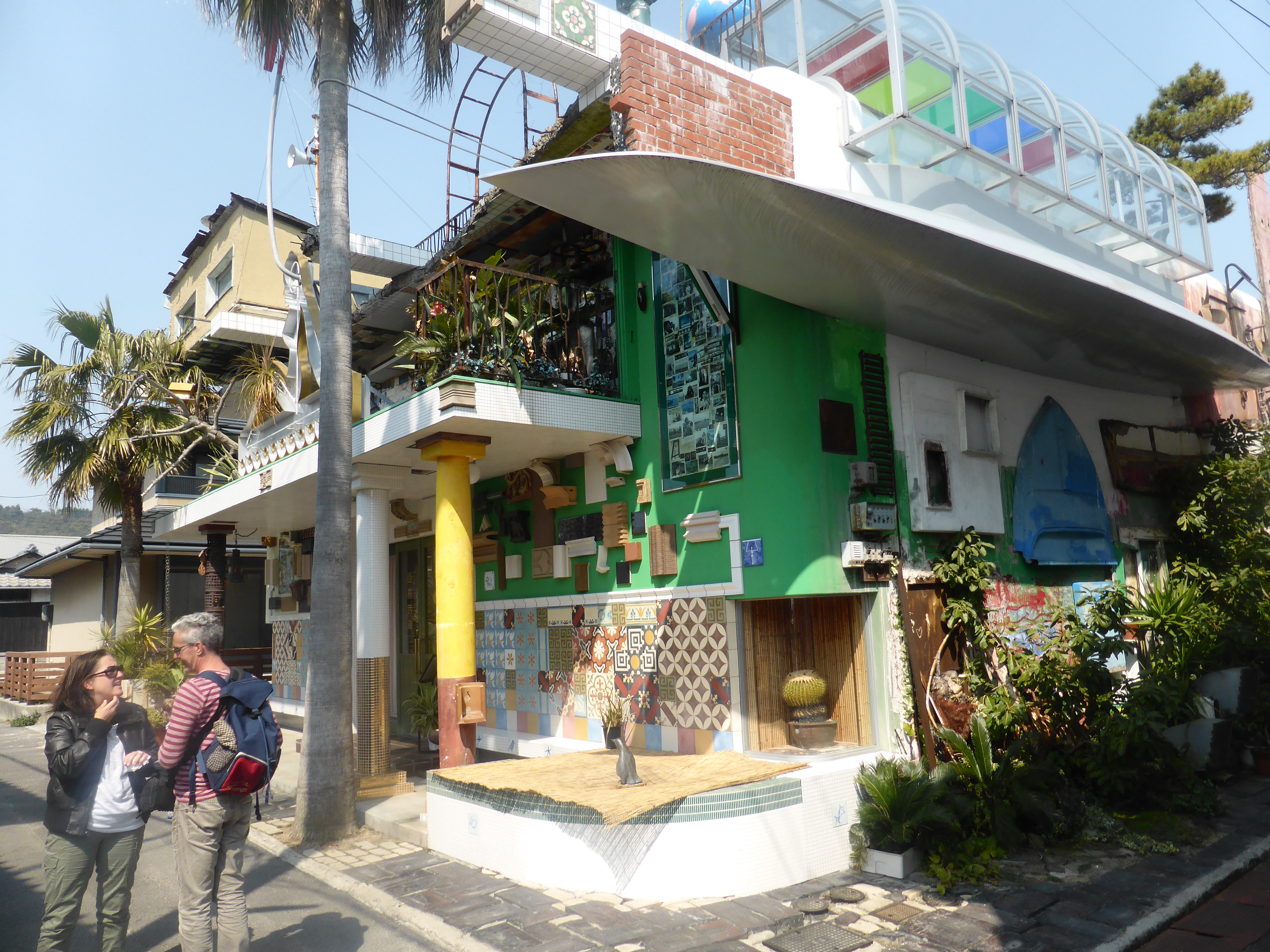 The onset (public bath house) in Miyanour is  a piece of art by Shinro Ohtake who has several other art installations in the area .