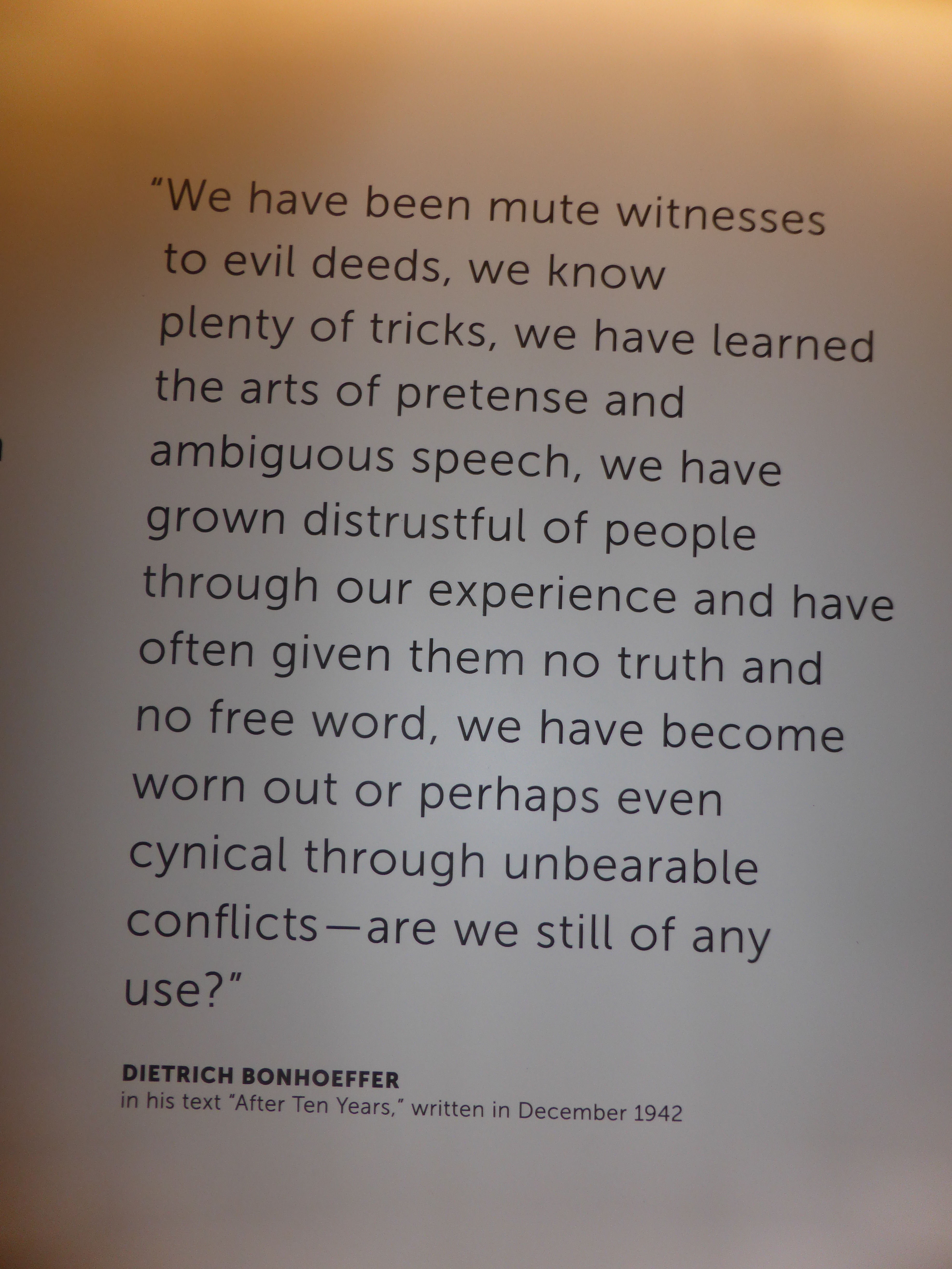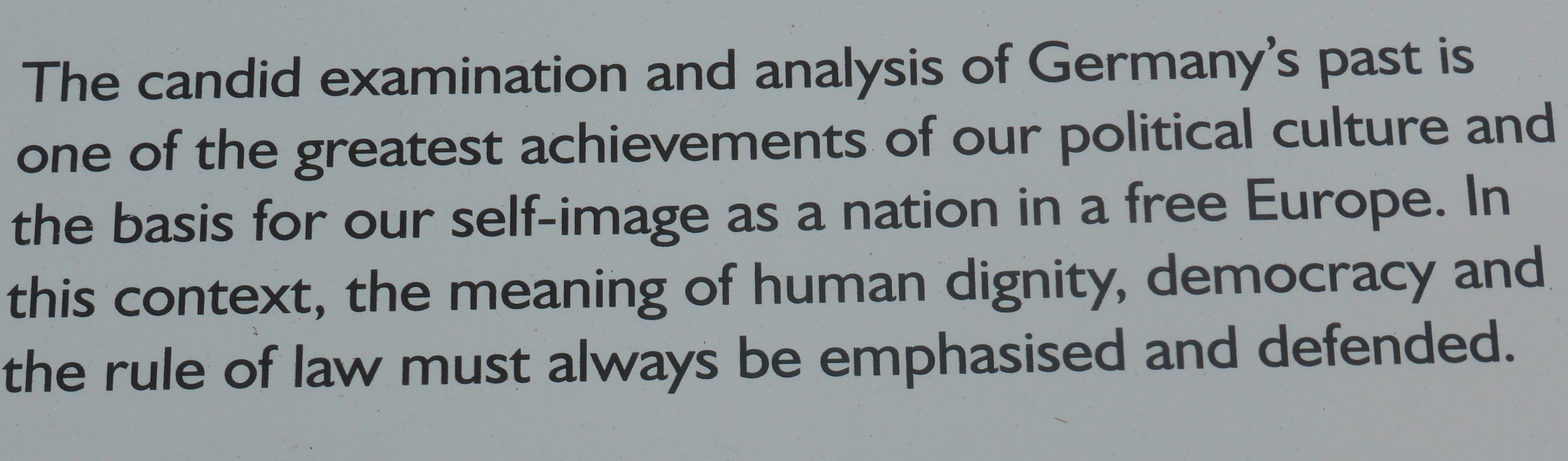 A panel in the Topography of Terrors speaks of the seeming indifference of “ordinary” Germans to the treatment of the Jews, It speaks about how the “mistakes” or “excesses” in the Nazi’s treatment of Jews were seen as marginal in the context of the great political ‘events’ and the improvement in the social and economic lot of most citizens. These latter disposed people to view Hitler and his crowd’s treatment of the Jews with indifference. But there were exceptions……….