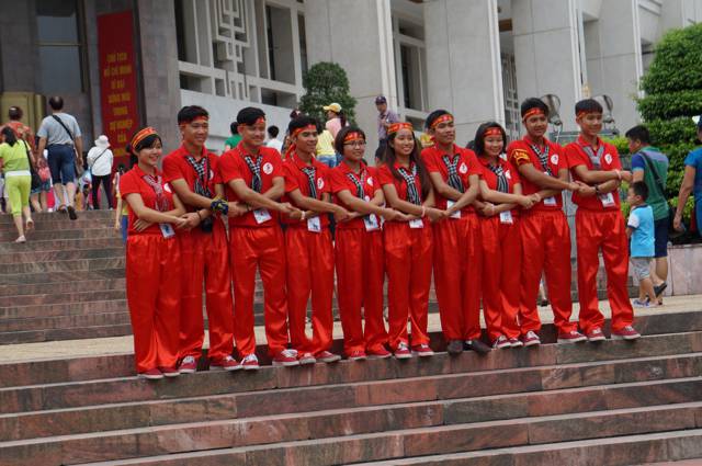 It took almost an hour for the 3k queue to get us to the door of his resting place where smiling and flashily dressed young guards indicated with a warm gesture that sunglasses were to be taken off. What pictorial memory of Hanoi would be complete without this photo?